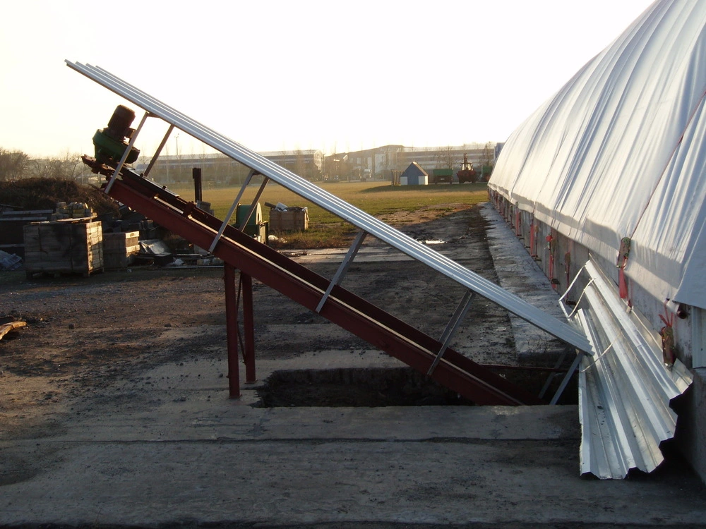 Данный механизм позволяет проводить чистку двух приямков что существенно снижает затраты на уборку крольчатника .